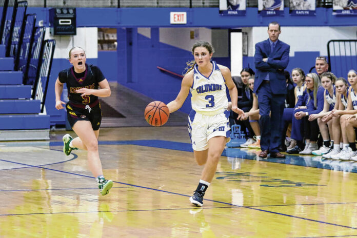 Columbus North’s Lauren Barker brings the ball down the court against Bloomington North at Columbus North, Friday, Jan. 20, 2023.
