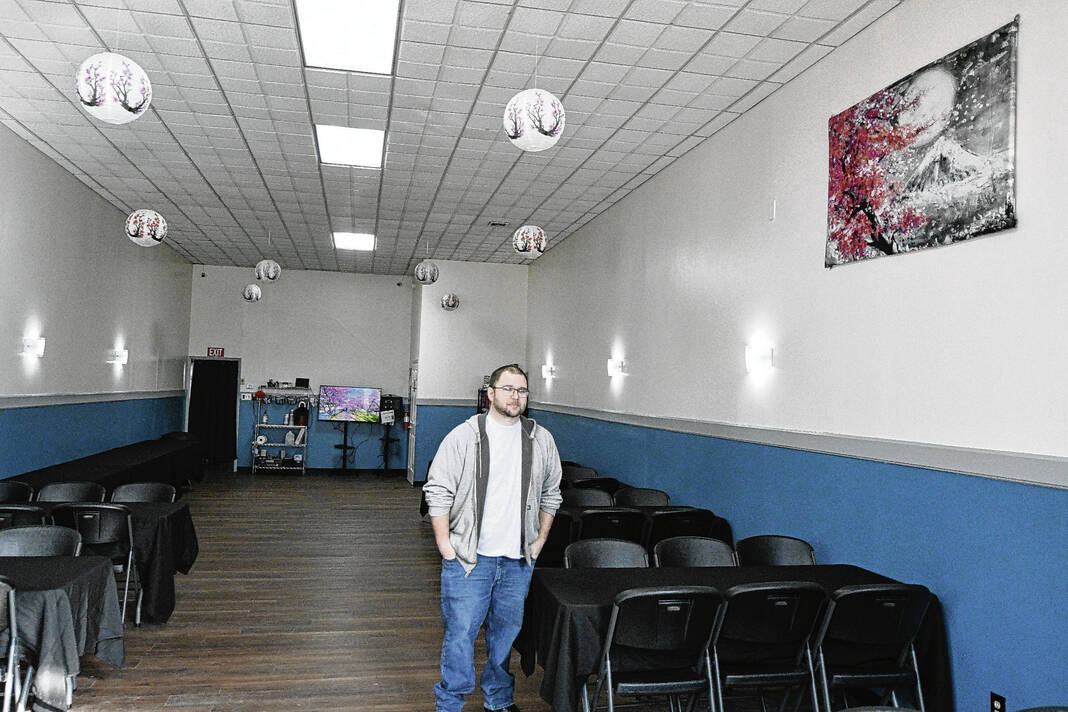 Sakura Event Center co-owner Cody Martin embraced a Japanese theme for the business, complete with paper lantern lamps and artwork of Japanese landscapes.