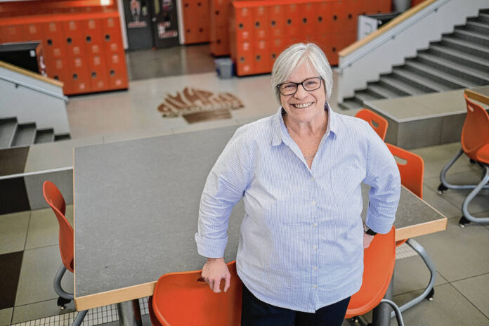 Mike Wolanin | The Republic Columbus East special education teacher Peggy Myers poses for a portrait at Columbus East High School in Columbus, Ind., Tuesday, Jan. 31, 2023. Myers has been named as an inductee into the Bartholomew Consolidated School Corp. Hall of Fame.
