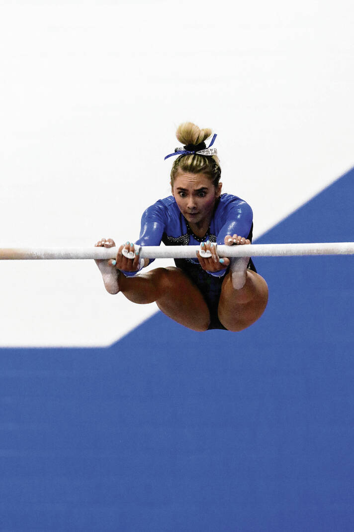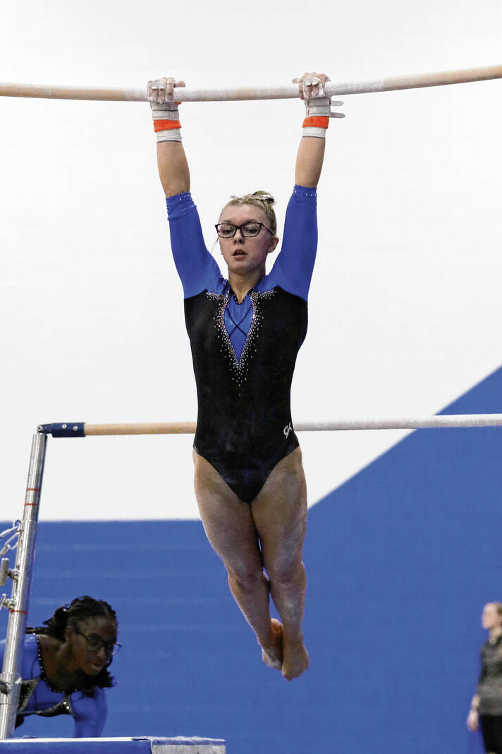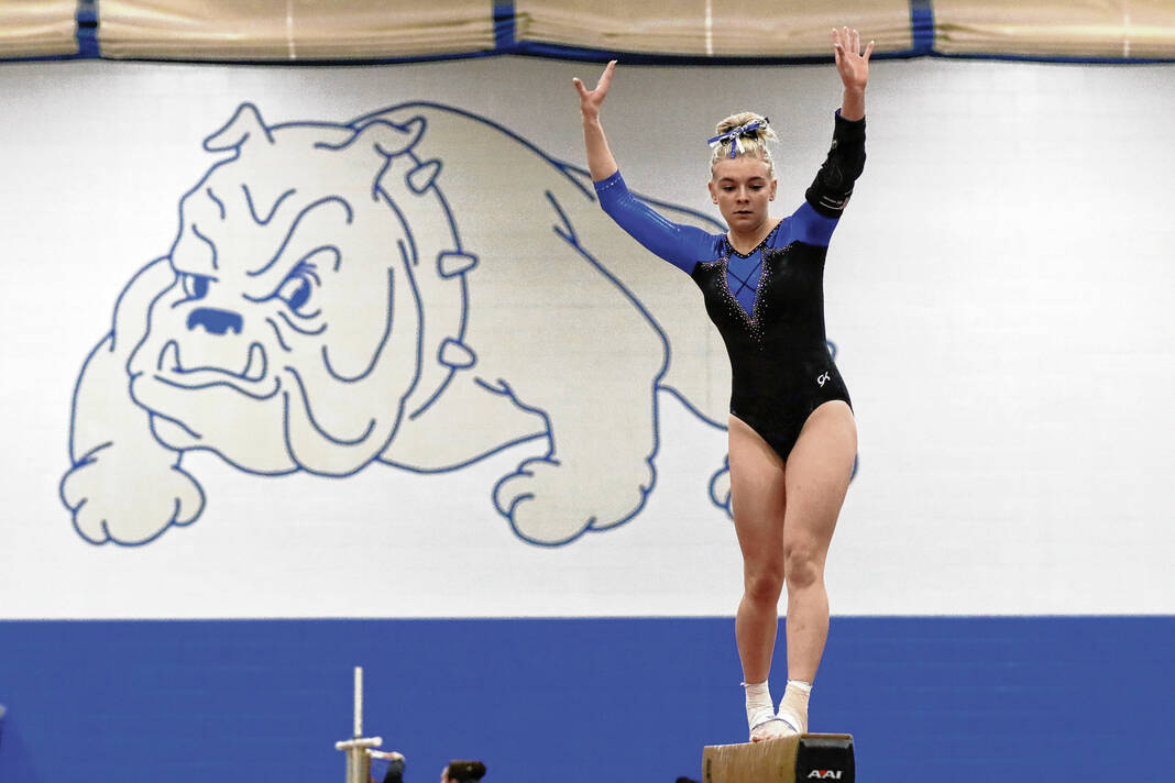 Bull Dog sophomore Reese Euler won the all-around competition, sweeping all four individual events to become all-around champion with a 38.450. She placed first on the vault (9.65), bars (9.6), beam (9.55) and floor (9.65).