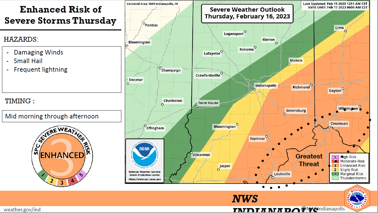 COLUMBUS, Ind. — Bartholomew County Emergency Management said Bartholomew County is under an enhanced risk of severe weather on Thursday.