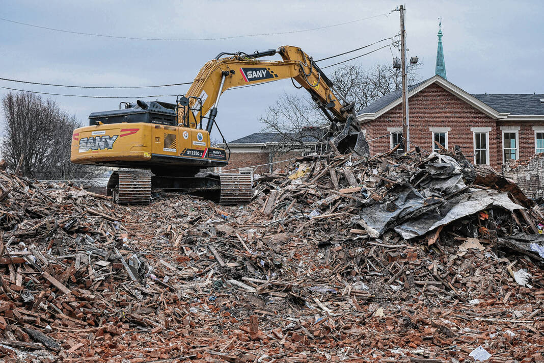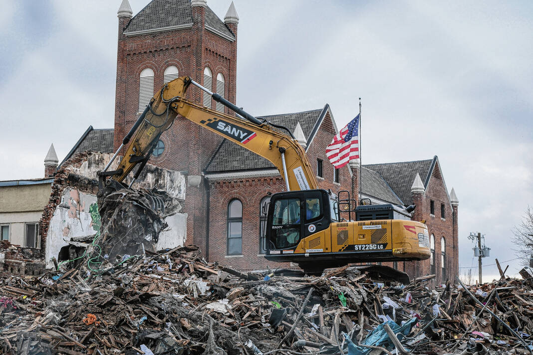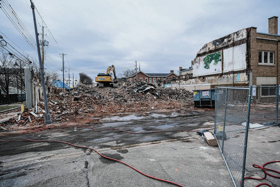 Clean-up efforts continued earlier this week after demolition crews started tearing down the roughly 129-year-old building in January. City officials have been told that the demolition could take six to eight weeks to complete, possibly by the end of this month.