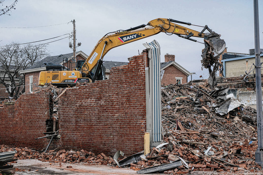 The building, known by generations of Columbus residents as the Irwin Block building on the 400 block of Fifth Street, was destroyed by a fire late Dec. 3, resulting in a large portion of the building’s third story façade collapsing onto the sidewalk.