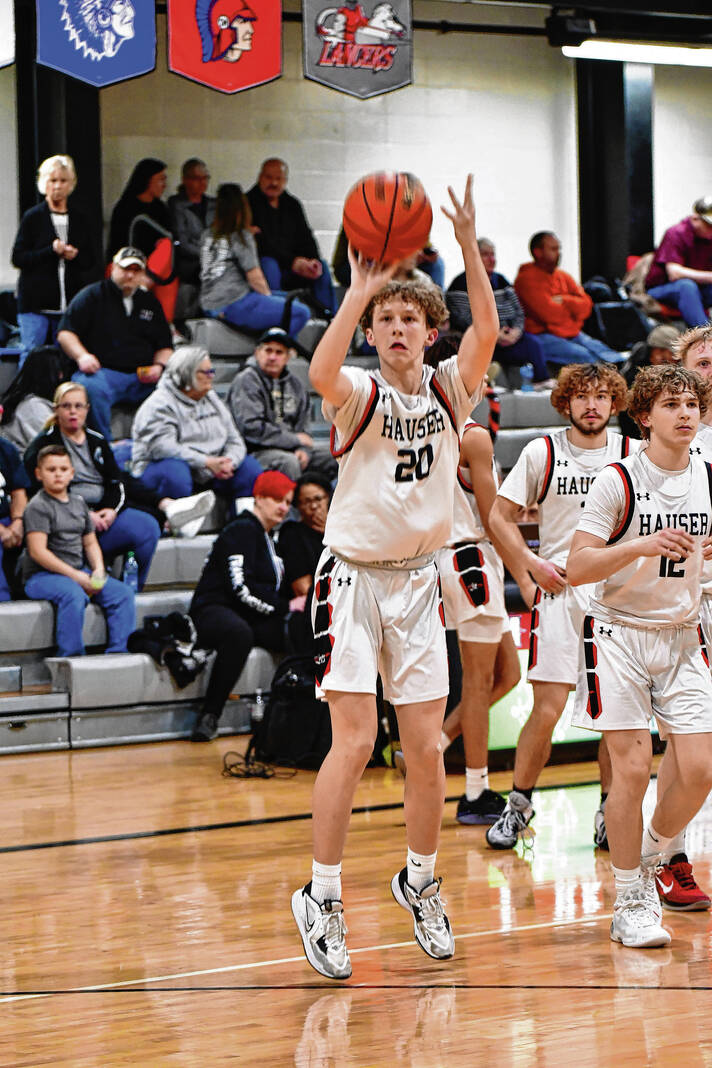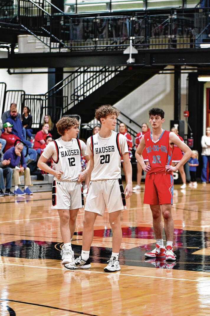 “It’s a perfect rule for freshmen in their position. In my mind, why not use all five of those and get them able to see what game night is like for a high school game night on Friday and Saturday nights,” Hauser coach Trent Moorhead said. “It also gets them on the court and be able to calm some nerves down for a quarter of the JV game. Once they hit the varsity court, they’ve been out here before. I think that rule really benefits freshmen who can play some varsity.”