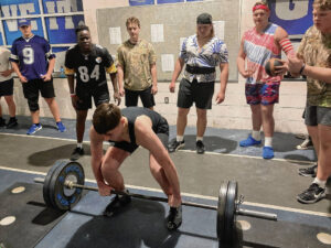 “This whole offseason, the team has been working really hard in the weight room and on the field and after schools in SAQs (Strength, Agility, Quickness sessions),” said quarterback Hudson Elwood, who will be a senior in the fall. “We put it all together tonight. A lot of us PRs and had some really good maxouts. Especially with the environment going on with the whole team around you and cheering, music going, your teammates yelling at you to get the bar up, it really gets you pumped to and ready to get that max up.”