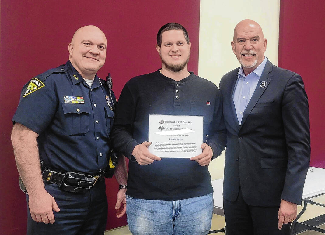 As part of the annual awards program, the VFW asks for nominees for Outstanding Citizen, Police Officer, Firefighter and Emergency Medical Technician of the Year. The police officer is chosen by the chief of Greenwood Police, the firefighter and EMT by the chief of Greenwood Fire, and the citizen is chosen by the mayor, said Steve Milbourn, commander of the VFW post.