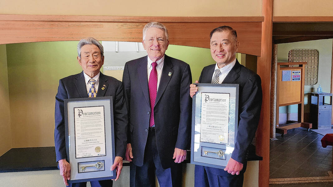 In addition, the delegation presented keys to the city of Columbus to former Miyoshi Mayor Kenji Onoda and former City Council Chair Toshio Kondo.