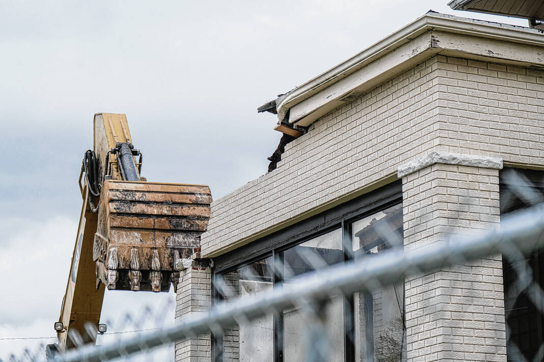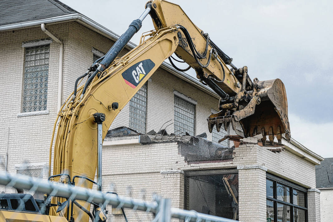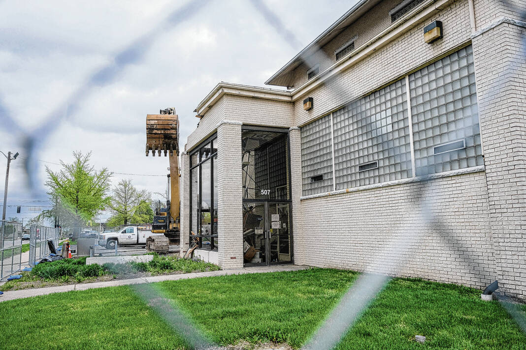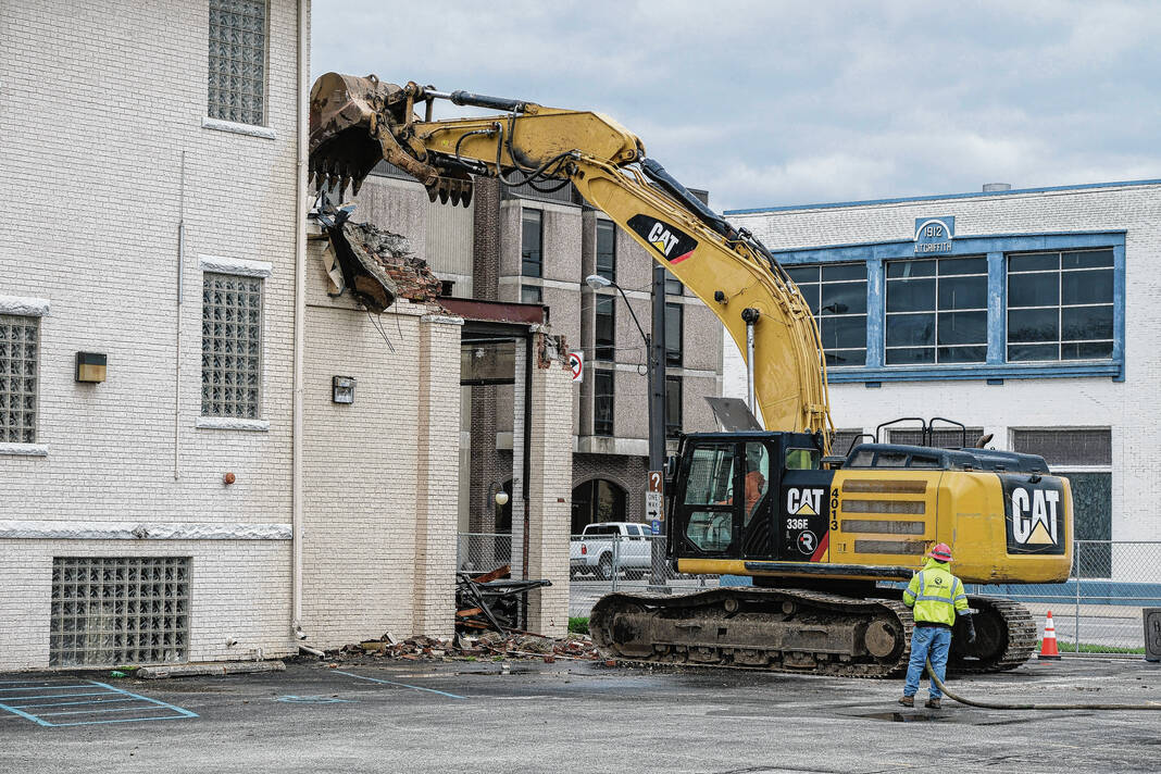 Mike Wolanin | The Republic A crew begins demolition on the old court services building in Columbus, Ind., Monday, April 17, 2023.