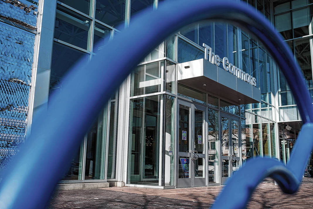 Mike Wolanin | The Republic An exterior view of The Commons through a c-shaped bike rack in Columbus, Ind., Tuesday, Jan. 25, 2022.