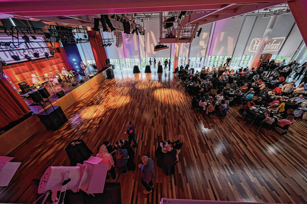 Mike Wolanin | The Republic People gather for Hutchfest at The Commons in Columbus, Ind., Friday, April 21, 2023. The concert was organized by the Landmark Columbus Foundation to raise money for the Crump Theatre.