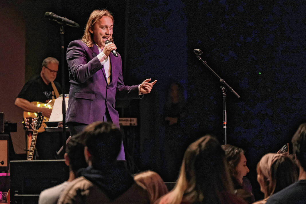 For example, North student Austin Clark, singing the 1976 EltonJohn/Kiki Dee hit “Don’t Go Breaking My Heart” with Alaney Parker, sported Eltonesque oversized square glasses adorned with faux diamonds and a striped, electric blue suit that would have made the keyboard king proud.