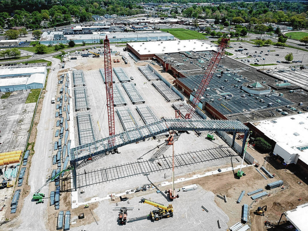 The vision is beginning to take shape, as you can see if you were near the venue in the last week. Force Construction crews recently began assembling the massive frame and rafters that now tower over the mall, forming the bones of what will be the Circle K Fieldhouse.