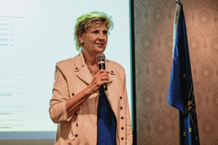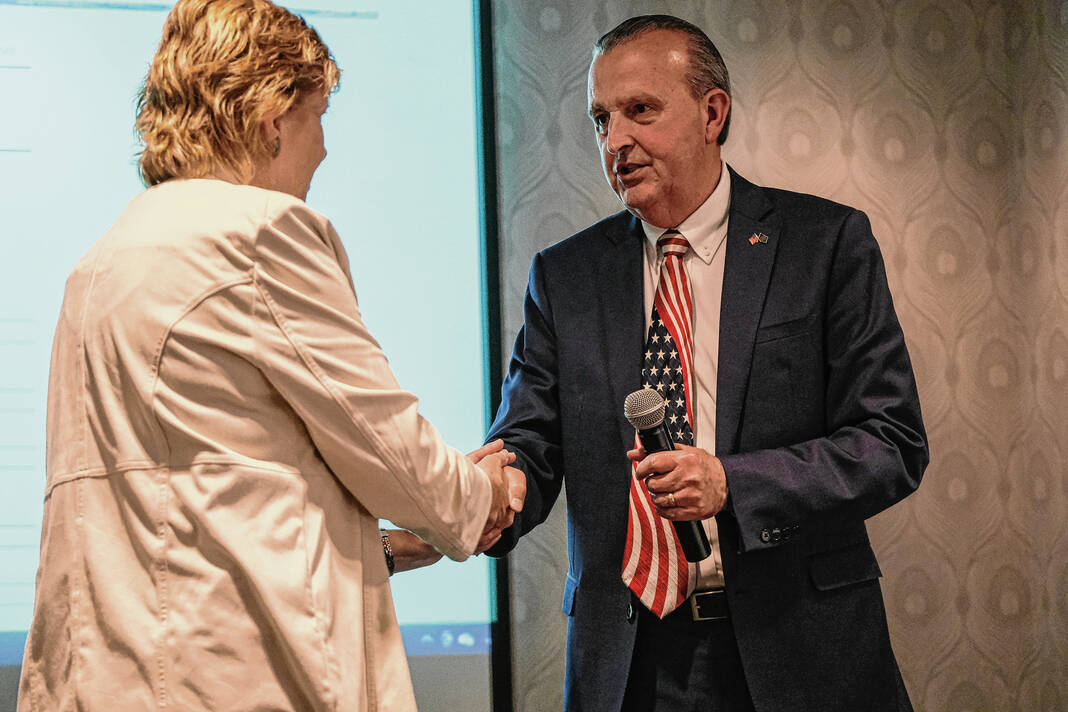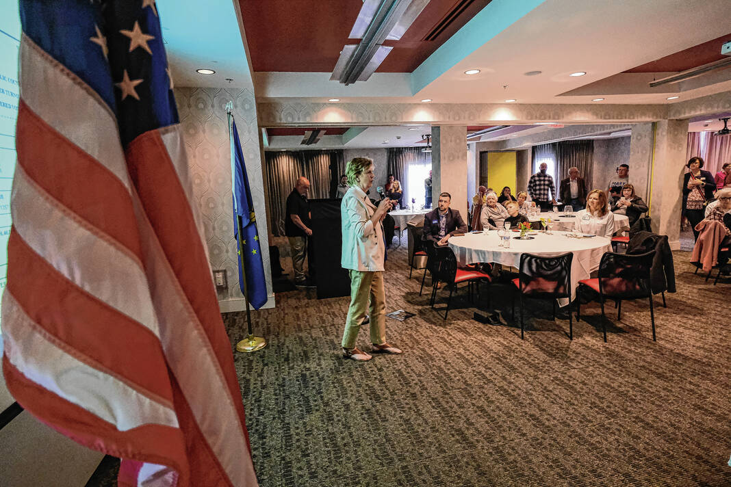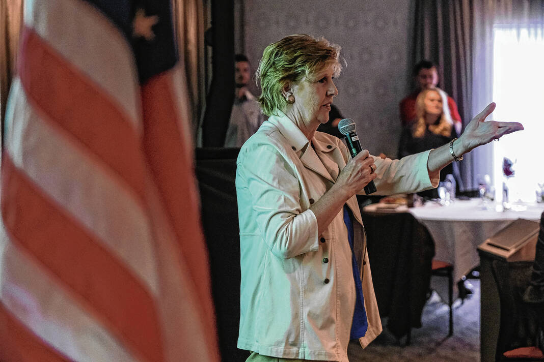 Mike Wolanin | The Republic Republican candidate for Columbus mayor Mary Ferdon thanks her supporters during the Bartholomew County Republican Party primary results watch party at Hotel Indigo in Columbus, Ind., Tuesday, May 2, 2023. Ferdon beat Republican Milo Smith in the primary for Columbus mayor.
