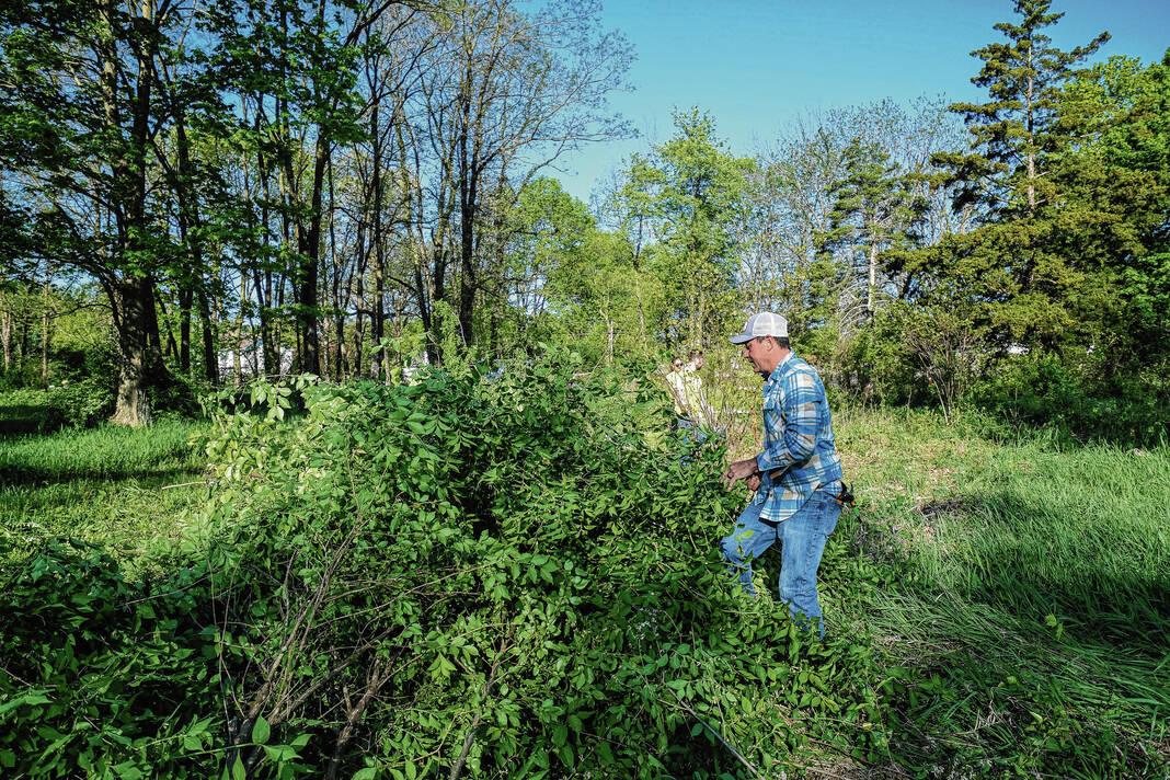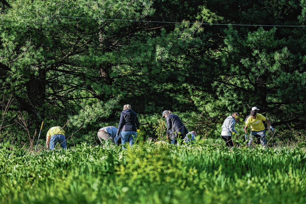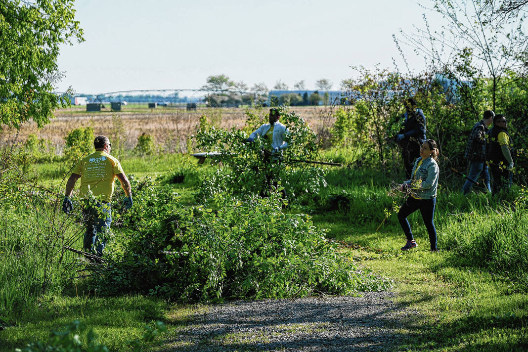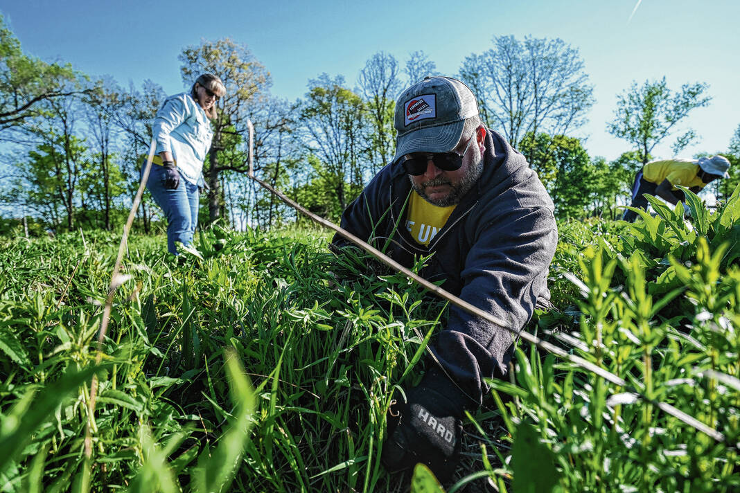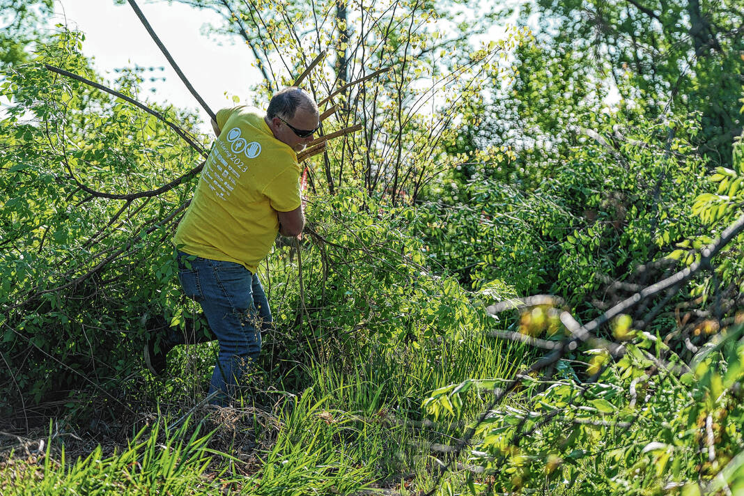 Joel Philippsen organized a group of people from Columbus Regional Health’s marketing and physicians liaison team to work pulling weeds in pollinator garden beds at Blackwell Park. Philippsen has volunteered in the past for a simple reason.