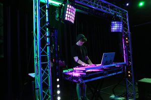 DJ Pax Dunlap plays the music during the Turning Point’s 2023 After Prom Party event for freshmen and sophomores held at Central Middle School in Columbus, Ind., Saturday, May 6, 2023.