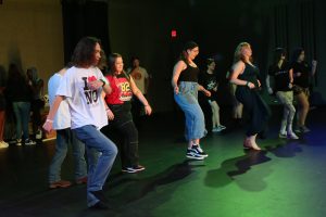 Summer Lahrman dances in the Gray Box Theatre during the Turning Point’s 2023 After Prom Party event for freshmen and sophomores held at Central Middle School in Columbus, Ind., Saturday, May 6, 2023.