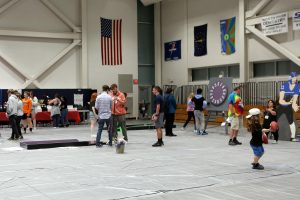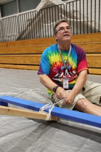 Greg Lewis ties down one of the games during the Turning Point’s 2023 After Prom Party event for freshmen and sophomores held at Central Middle School in Columbus, Ind., Saturday, May 6, 2023.