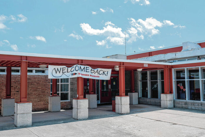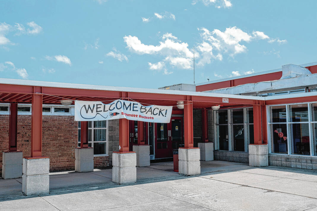 Mike Wolanin | The Republic An exterior view of Schmitt Elementary in Columbus, Ind., Wednesday, Aug. 3, 2022.