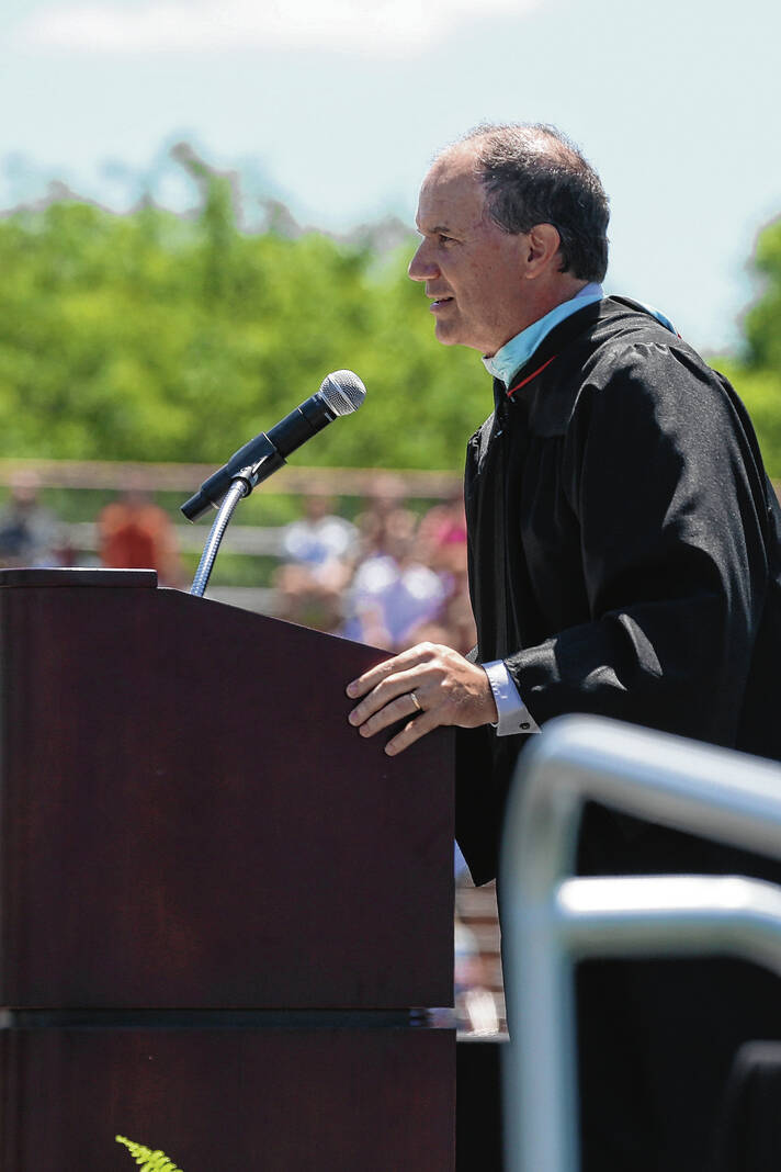 Carla Clark | For The Republic Principal Mark Newell speaks during the Columbus East High School commencement ceremony at Stafford Football Field, Saturday, May 28, 2022.