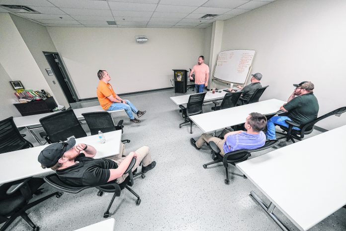 Mike Wolanin | The Republic A group of Columbus Police officers and Bartholomew County Sheriff’s deputies go over clues during a training session on tracking down and locating missing children at Evolution Training Center in Columbus, Ind., Wednesday, May 10, 2023.