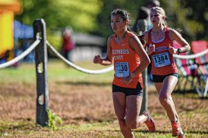 Mike Wolanin | The Republic Columbus East’s Chloe Krueger competes in the girls cross country sectional at Brown County’s Eagle Park in in Nashville, Ind., Saturday, Oct. 8, 2022.