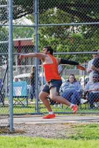 Columbus East’s Jacob Guse competes in the discus during the sectional at Columbus North, Thursday, May 18, 2023. Paige Grider for The Republic
