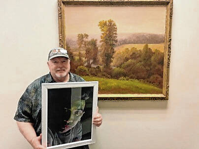 Photo provided Sixth District Congressional Art Competition Judge Rick Wilson holds the 2023 winning submission in Rep. Greg Pence’s Columbus office.
