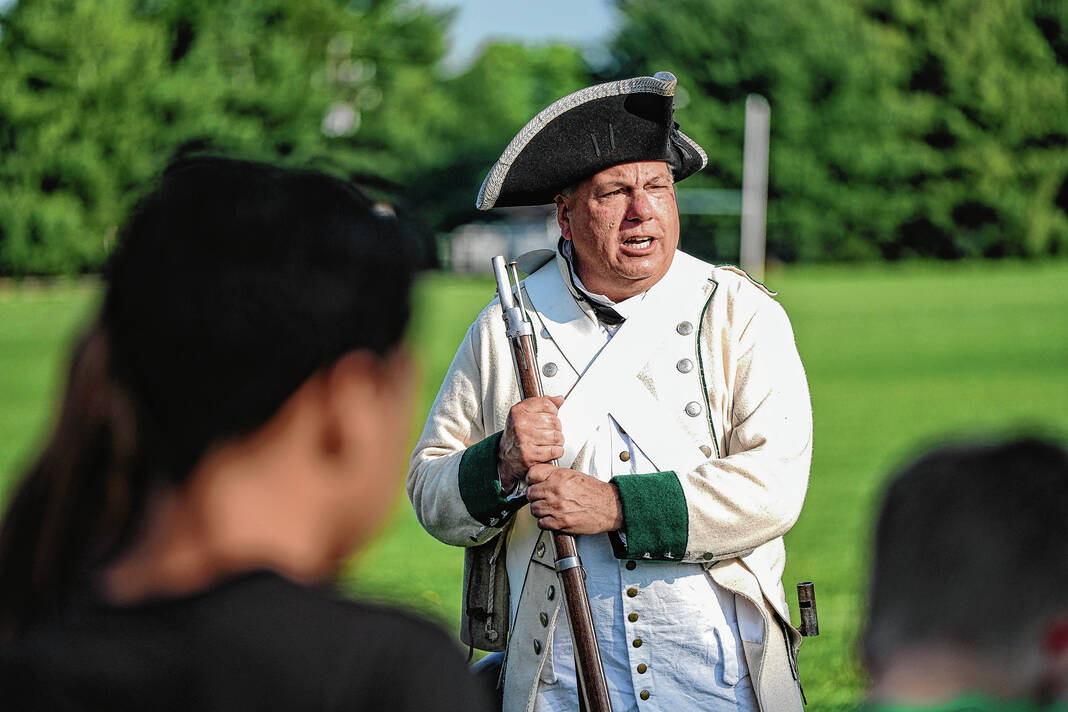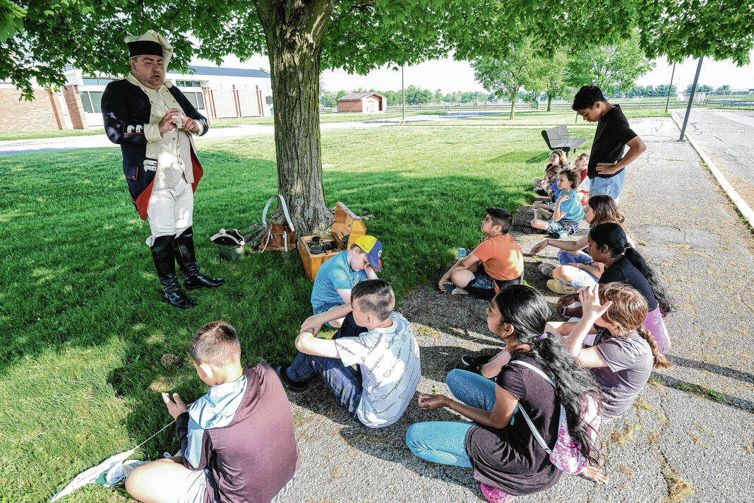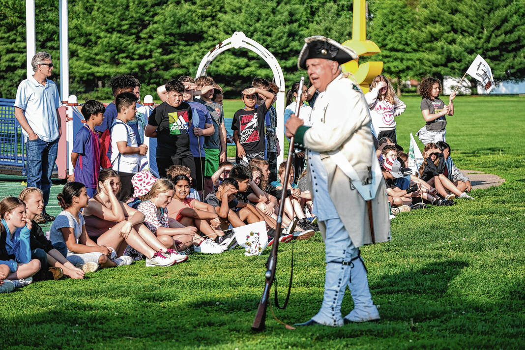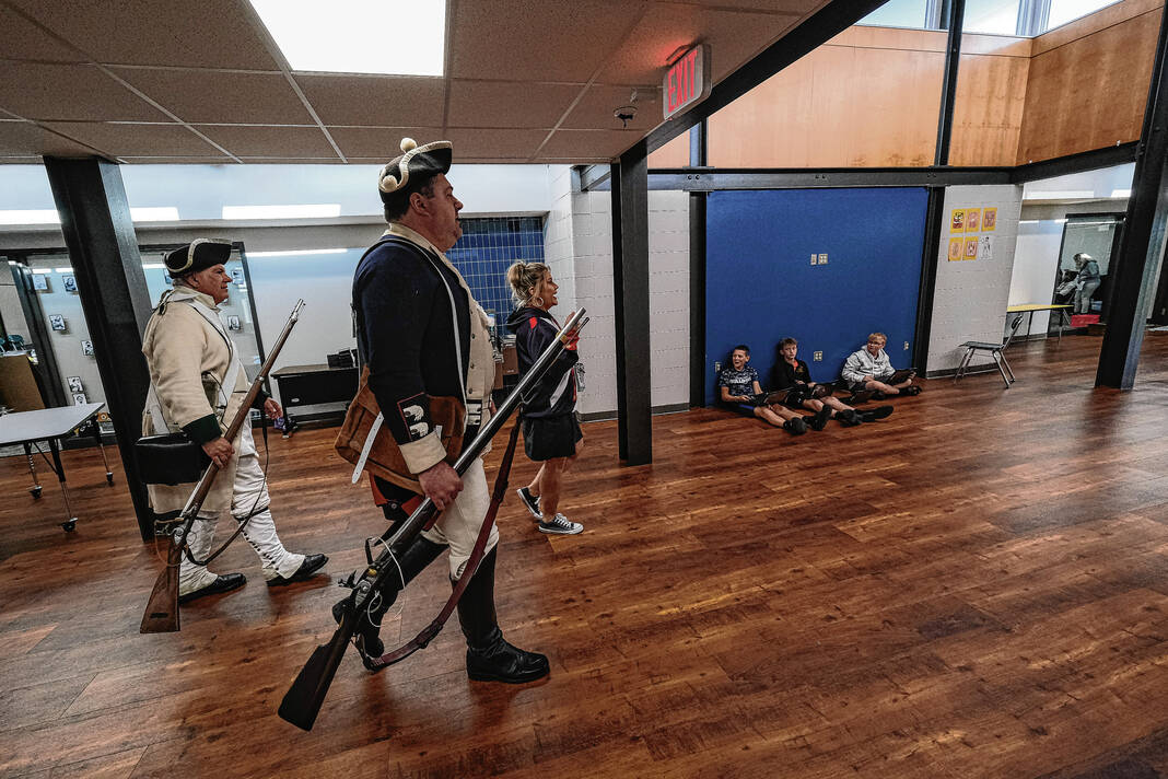 Mike Wolanin | The Republic Doug Roush is dressed as a Continental soldier for the Revolutionary Fair at Parkside Elementary School in Columbus, Ind., Friday, May 12, 2023.
