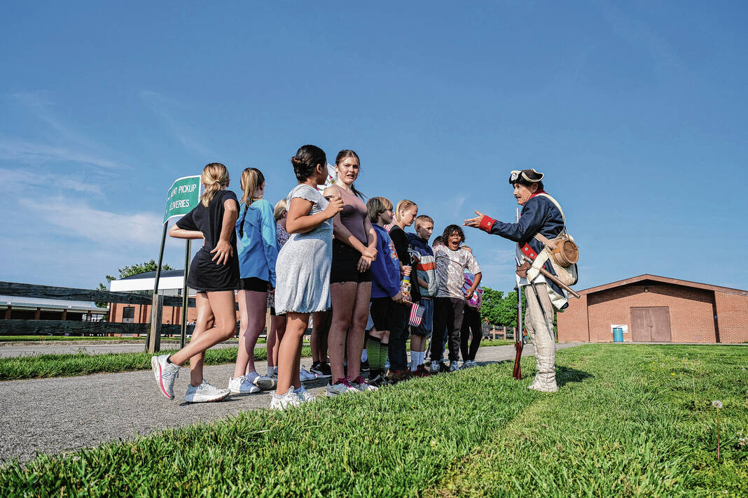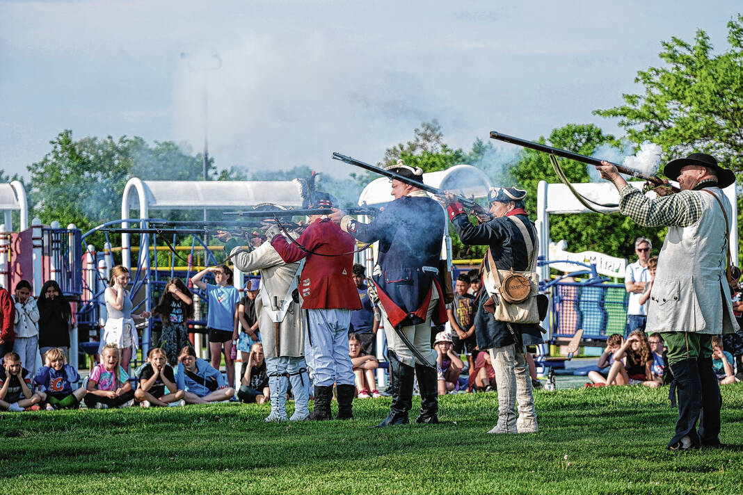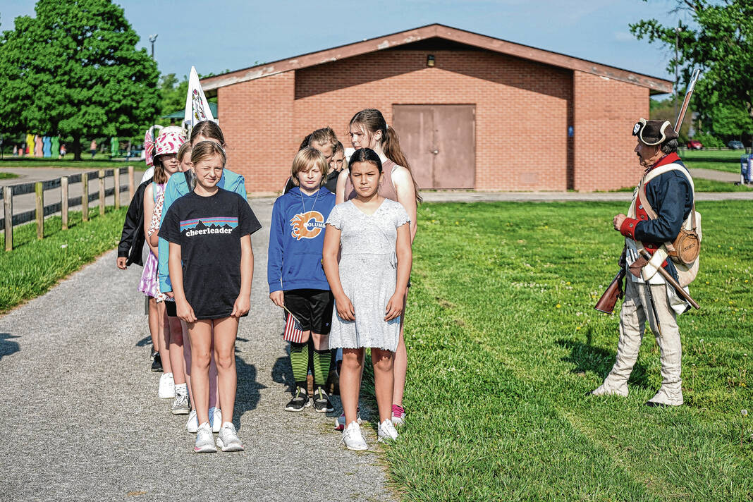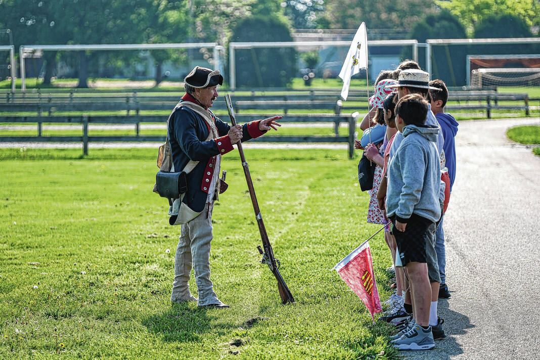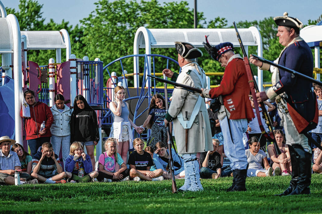 Mike Wolanin | The Republic Doug Roush is dressed as a Continental soldier for the Revolutionary Fair at Parkside Elementary School in Columbus, Ind., Friday, May 12, 2023.