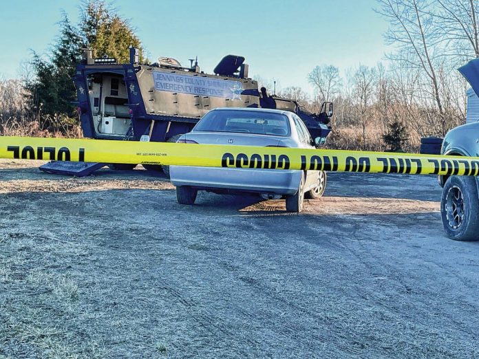 Photo provided Indiana State Police provided this photo of the scene where Jennings County Sheriff’s deputies attempted to serve a bench warrant on a suspect who was later shot to death by a deputy during a foot chase.