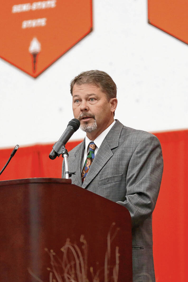 Superintendent Jim Roberts compared students’ path from elementary to high school as a journey upward, with students reaching the apex at graduation and then beginning a new journey, “an assent up the mountain of life.”
