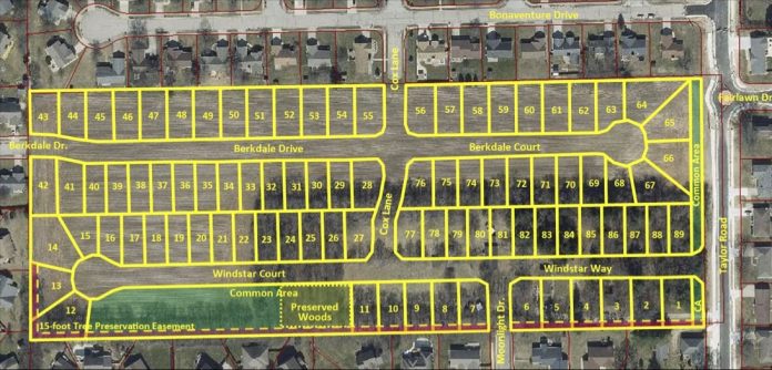 According to a memo from senior planner Ashley Beckort, the subdivision will be located on the west side of Taylor Road, between Greenbriar Addition and Skyview Estates. The approved preliminary plat for the development includes 89 lots and three common areas — one for the stormwater detention area and preserved woods, two for buffering along Taylor Road.