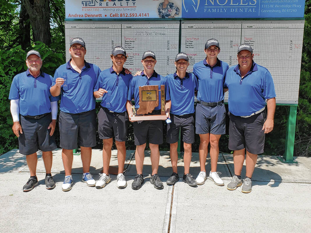 The Columbus North boys golfers won the Greensburg Sectional Friday at Greensburg Country Club. Pictured are, from left, assistant coach David Lacey, Willy Davis, John Merritt, Tyler Wilks, Brady Schneider, Jack Schiavello and head coach Doug Bieker.