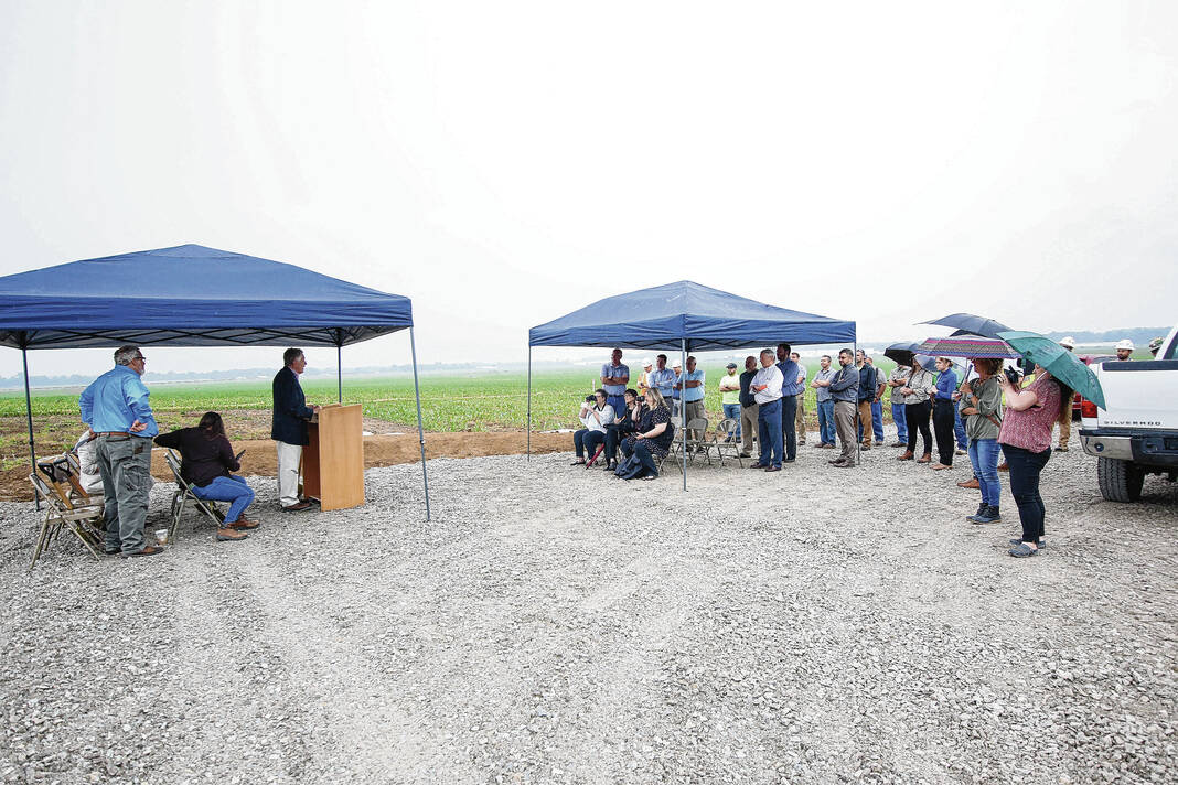 Carla Clark | For The Republic Roger Kelso, city utilities executive director, speaks during the Columbus City Utilites groundbreaking ceremony for the new water tank at the former Walesboro airport in Columbus, Ind., Wednesday, June 7, 2023.