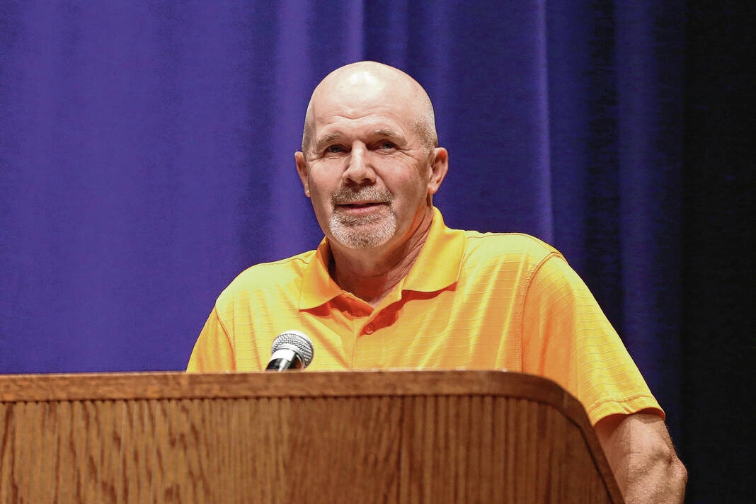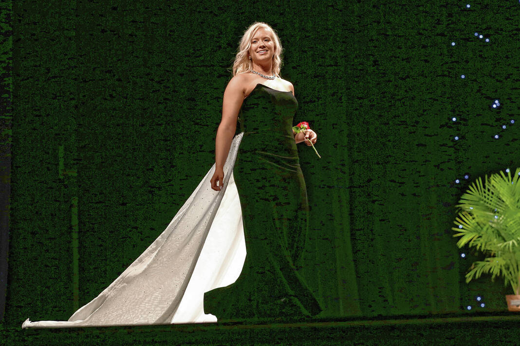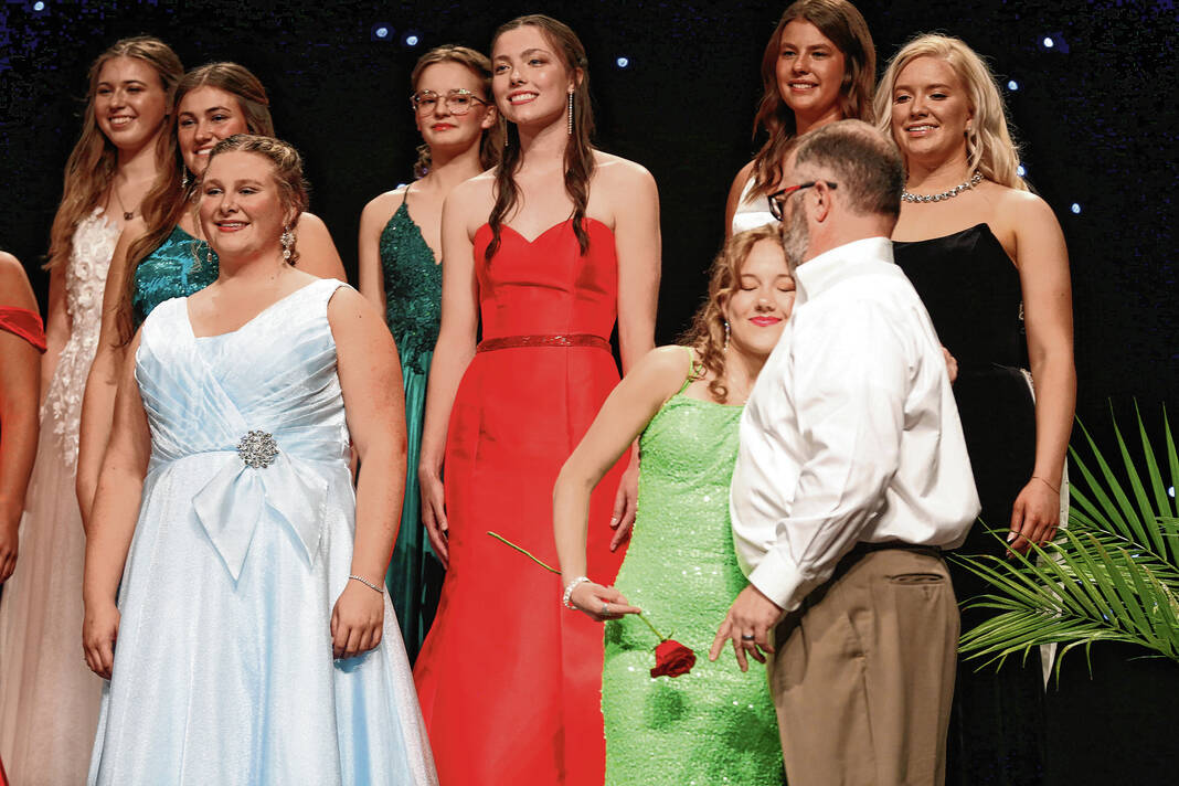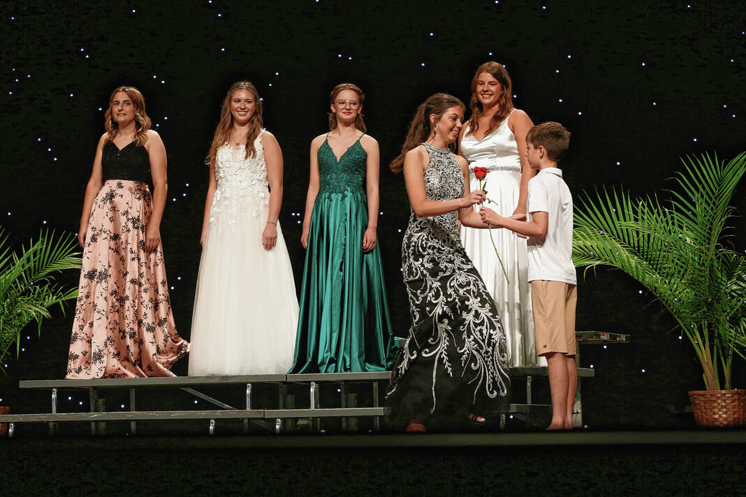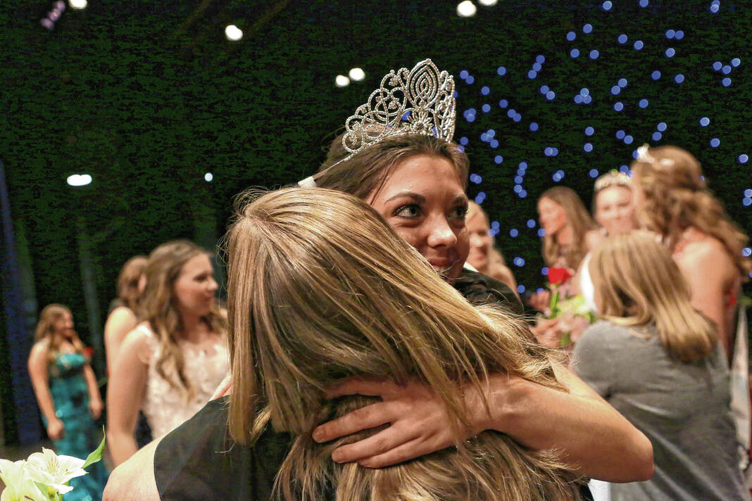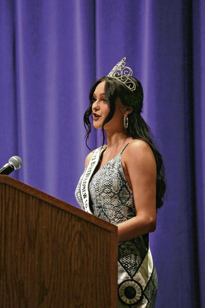 Lilly Smith, the 18-year-old daughter of Mark and Linda Smith, received her crown and sash from last year’s pageant winner, Marnie Schwartzkopf, in front of a crowd of about 250 Saturday in the Columbus North Judson Erne Auditorium.