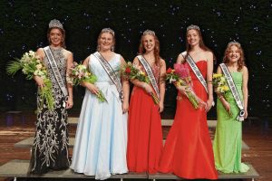 Lilly Smith, the 2023 Bartholomew County 4-H fair queen, with her court, Makena Jackson, first runner-up, Riley Carothers, second runner-up, Carlie Menefee, third runner-up and Annie Hughes, Miss Congeniality, during the 2023 Bartholomew County 4-H Fair queen pageant at Columbus North Judson Erne Auditorium in Columbus on Saturday.