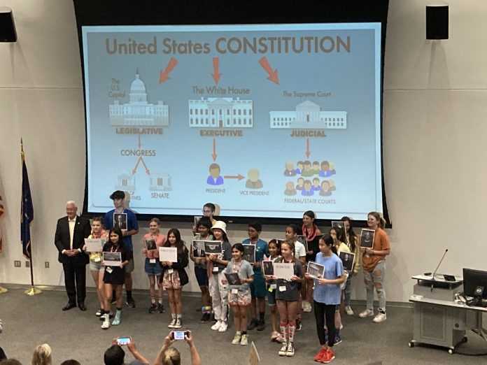 “What does a representative do?” he asked. “Literally, I represent people here in the Indiana Sixth District, and that includes 11 counties in central Indiana, so Bartholomew, Johnson and then kind of over towards the east. What do we represent? Anything that you or your parents or IUPUI or any school has in dealings with federal government. So if you need some help with the federal government, like Social Security, IRS or passports — that happens a lot — you call our office, and we come, and we help you get that done.”