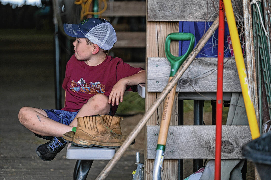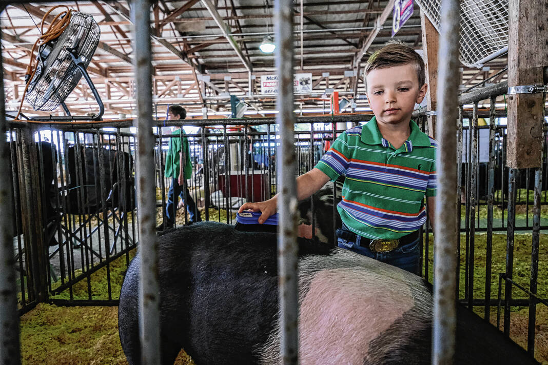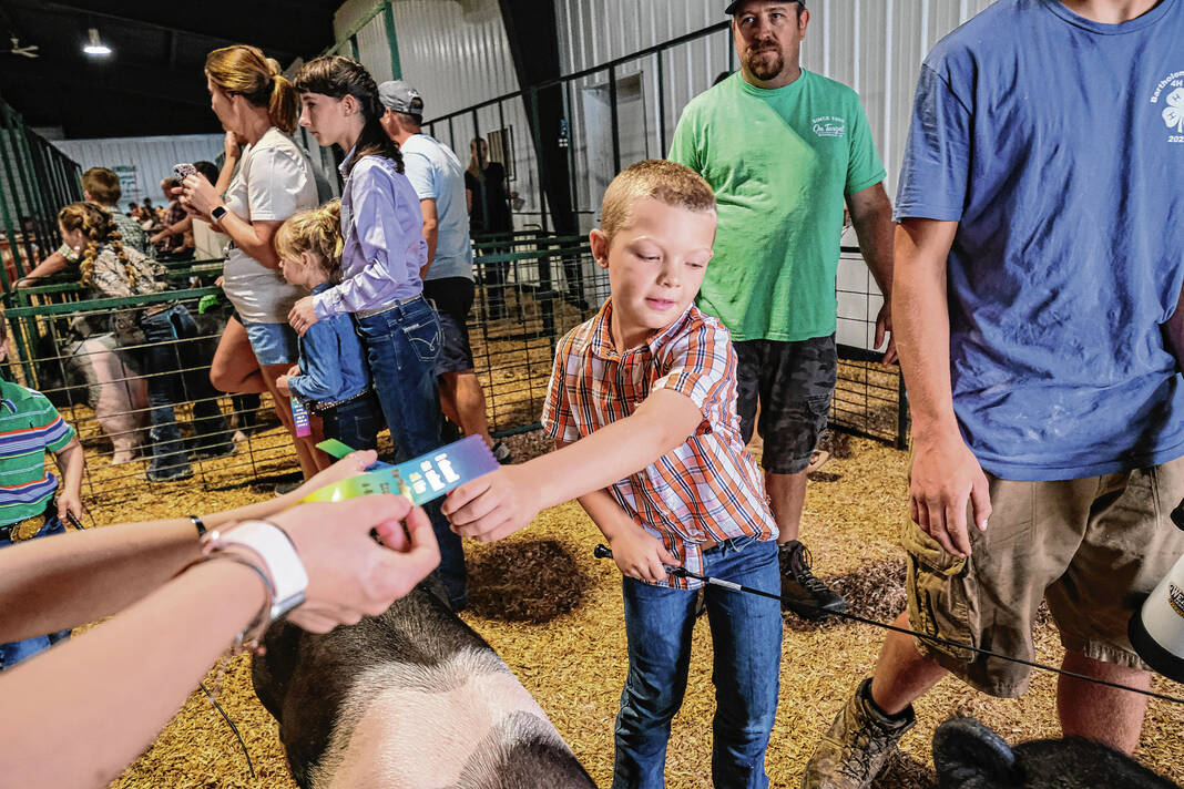 Mike Wolanin | The Republic Sam Harden takes part in the Lil’ Wranglers Swine Show during the Bartholomew County Fair at the Bartholomew County Fairgrounds in Columbus, Ind., Monday, June 26, 2023.
