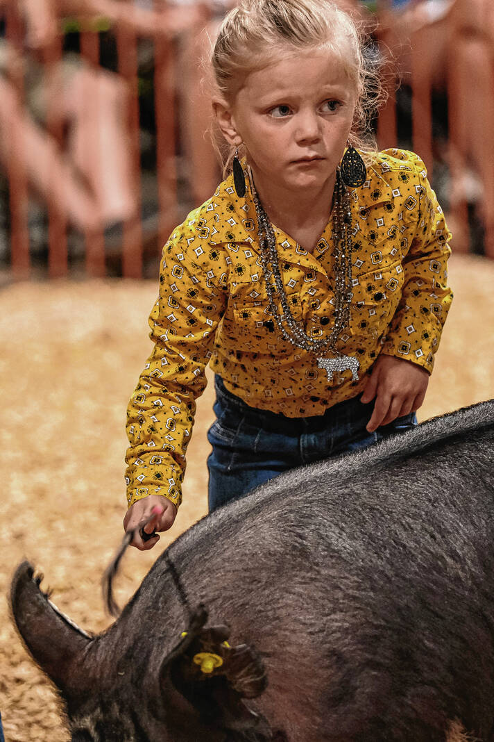 Some of the littlest exhibitors showed some really large pigs during Monday’s Swine Lil’ Wrangler competition at the Bartholomew County 4-H Fair.