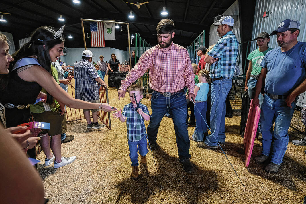 While having an older helper was optional during Saturday’s Lil’ Wrangler pygmy goat show, every young child had an adult standing by for the swine event in case one of the animals began acting up. Luckily, they were never needed.
