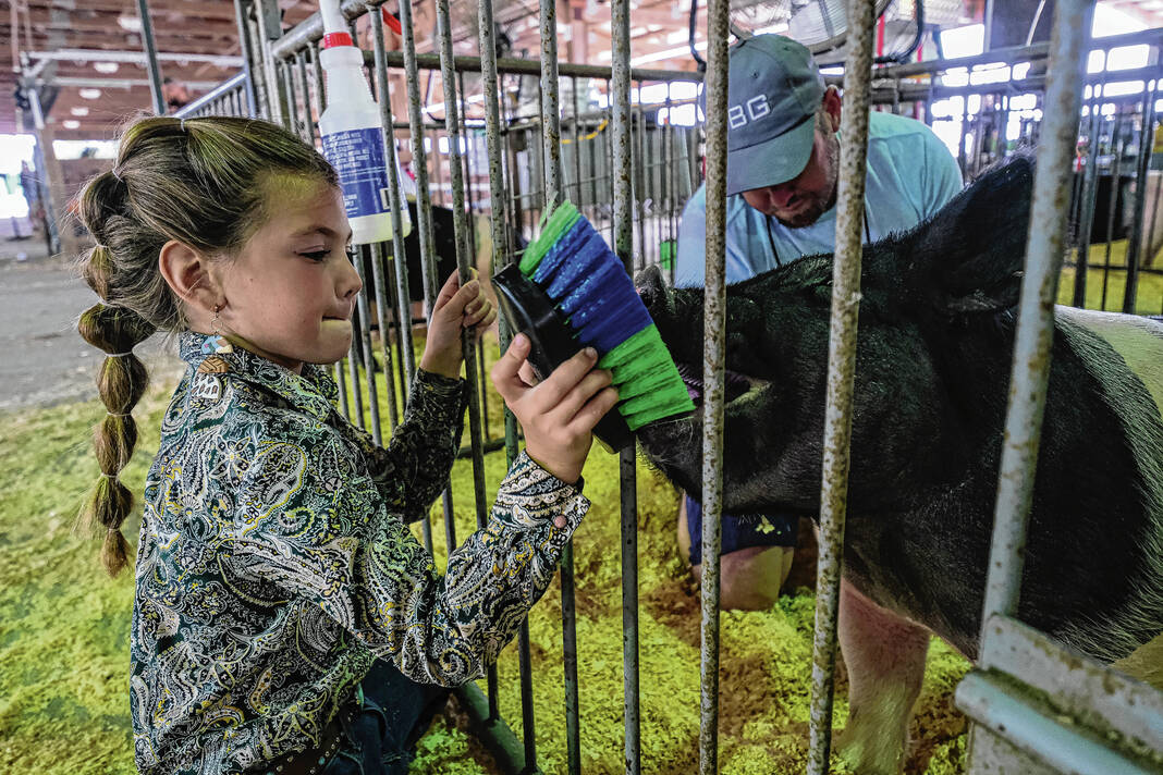 The youngsters were the preview in the 4-H Pavilion for the annual Swine and Gilt show that followed. More competition gets underway this morning with the 4-H Barrow Show and showmanship at 10 a.m.