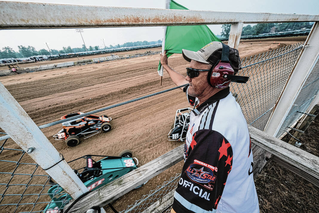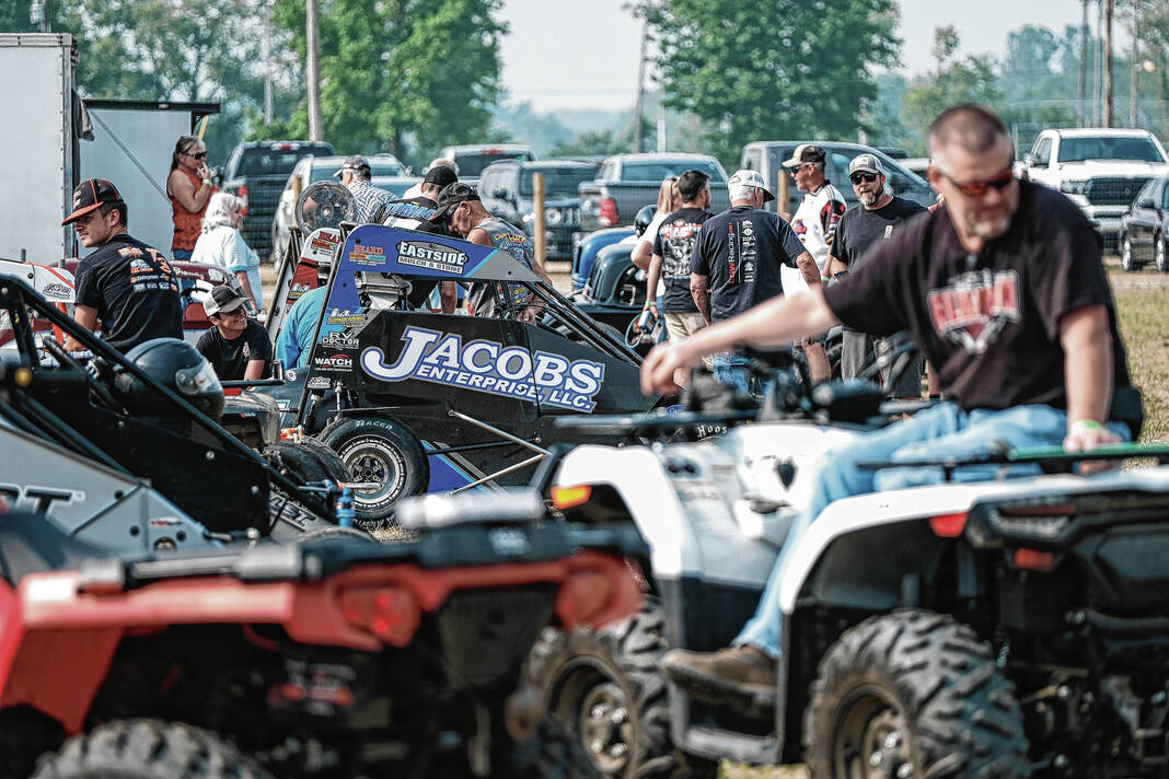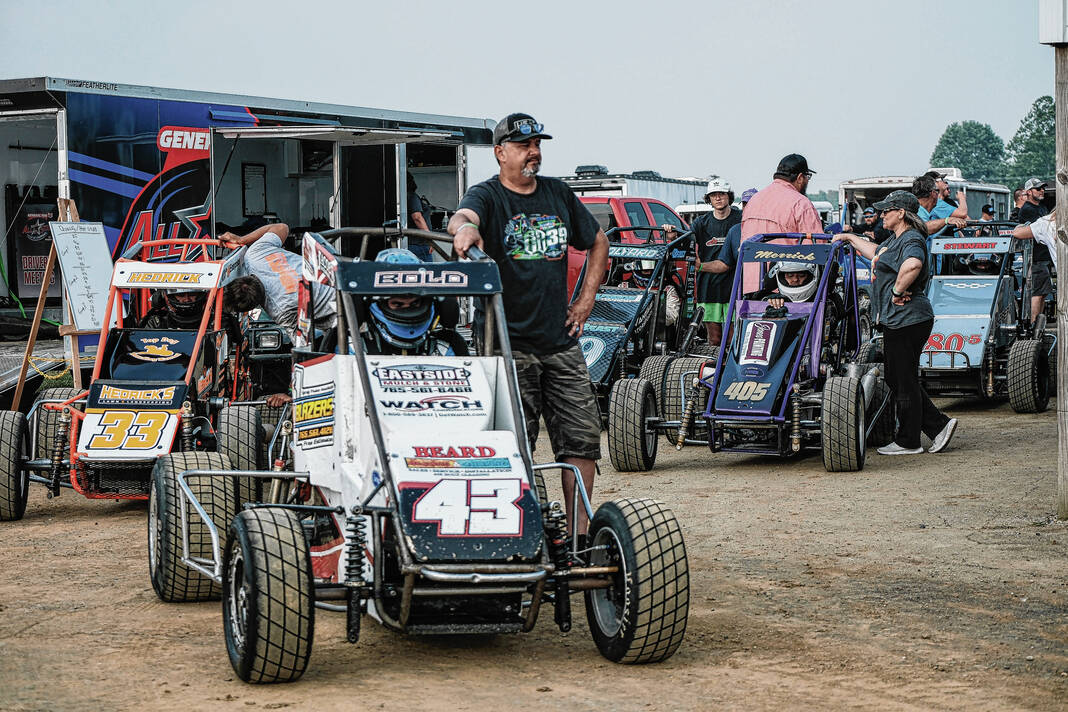 Racers get their midget cars ready for the All-Star Circuit of Champions TQ Midget race during the Bartholomew County Fair at the Bartholomew County Fairgrounds in Columbus, Ind., Tuesday, June 28, 2023.