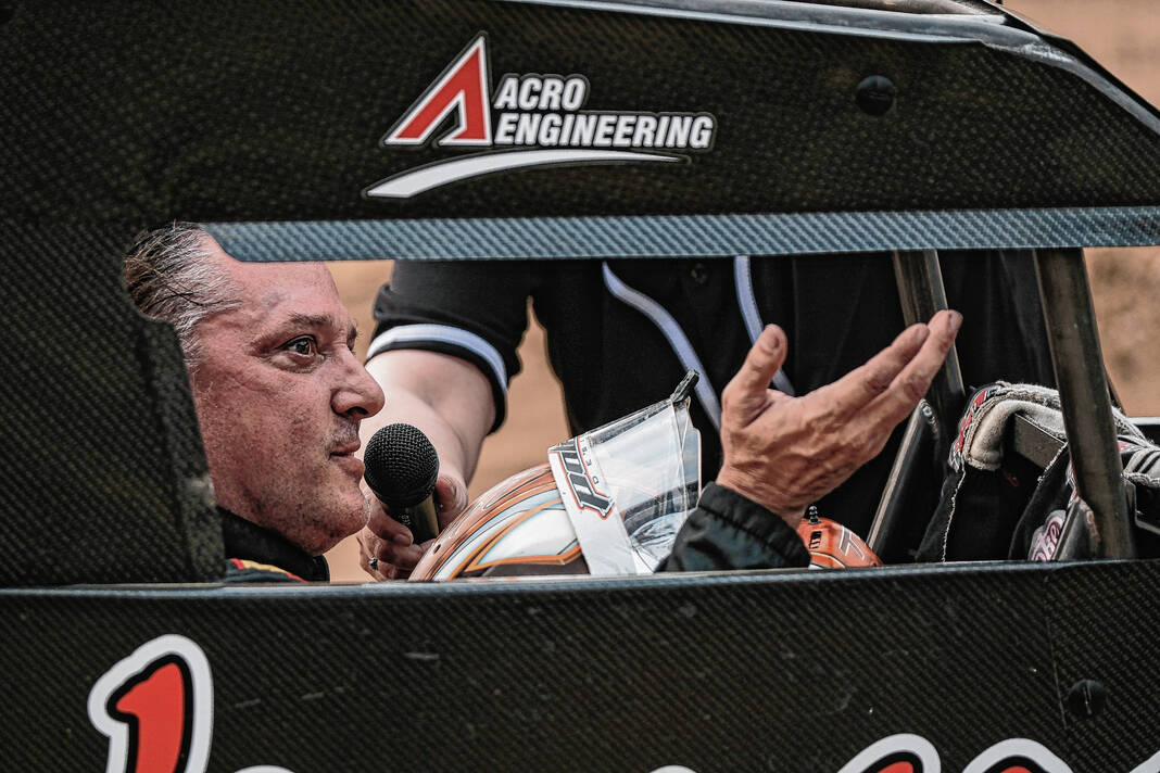 Moments after Tony won the All-Star Circuit of Champions TQ Midget race at the Bartholomew County 4-H Fair, Nelson Stewart drove to victory in the Outlaw Legends event. Earlier in the evening, Nelson was the fast qualifier for the TQ Midget race.
