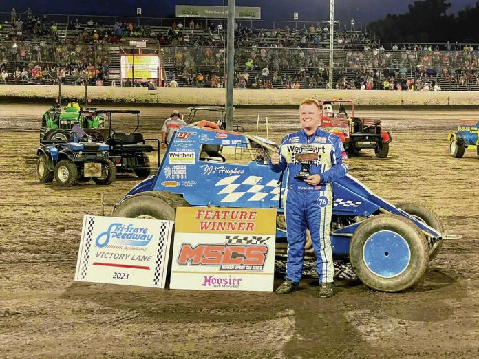 Columbus native J.J. Hughes picked up his first win in nearly four years on June 24 at Tri-State Speedway in Haubstadt during the MSCS Sprint Car main event.