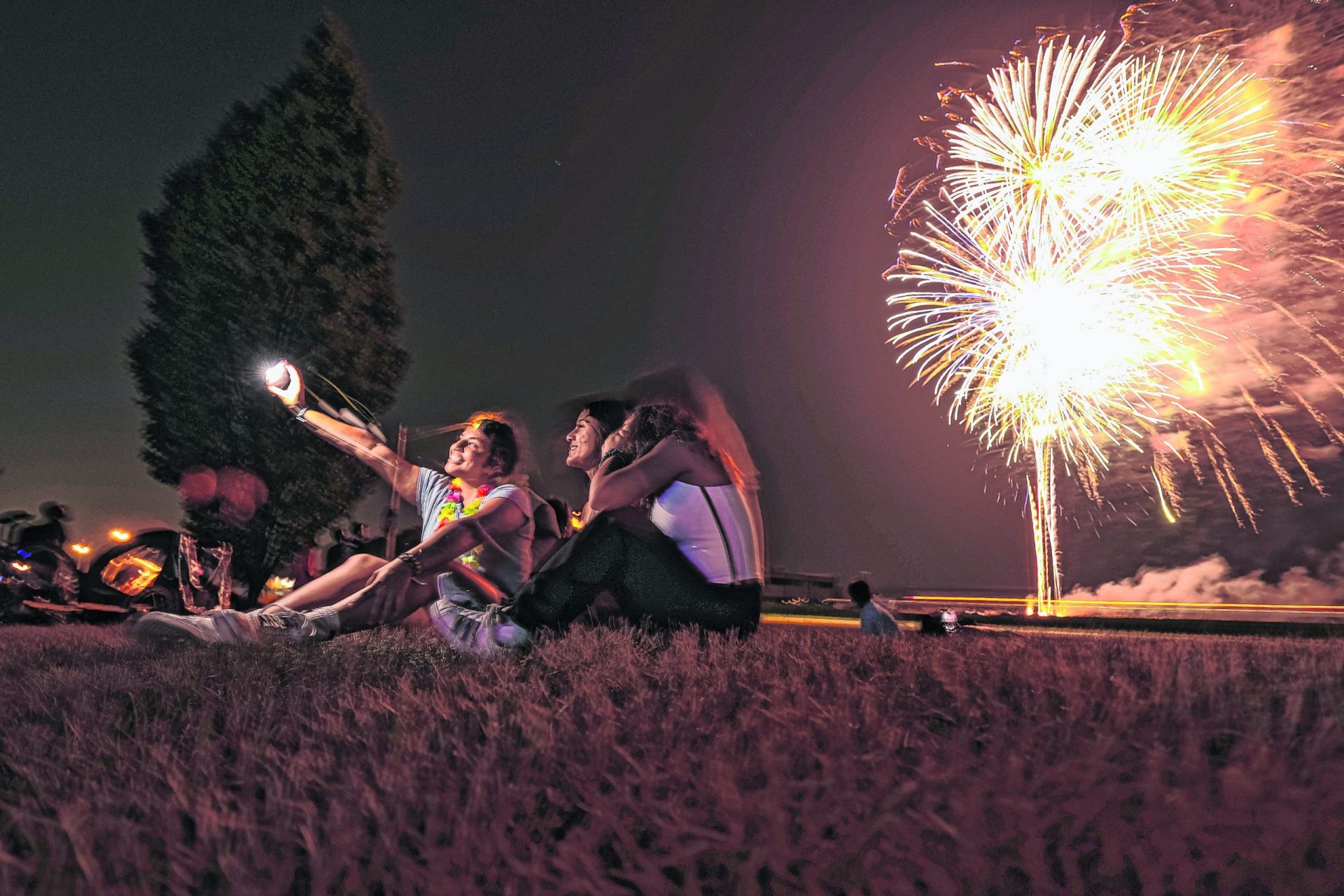 All of which leaves him bursting with pride as he watches the bursts of pyrotechnic patriotism. He was among throngs that turned out for the songs — compositions matching the rockets’ red glare. In fact, a 19-minute QMIX Radio soundtrack of clips of tunes, ranging from near-native John Mellencamp to Foo Fighters to Elton John, provided lyrical inspiration for the fire in the sky.