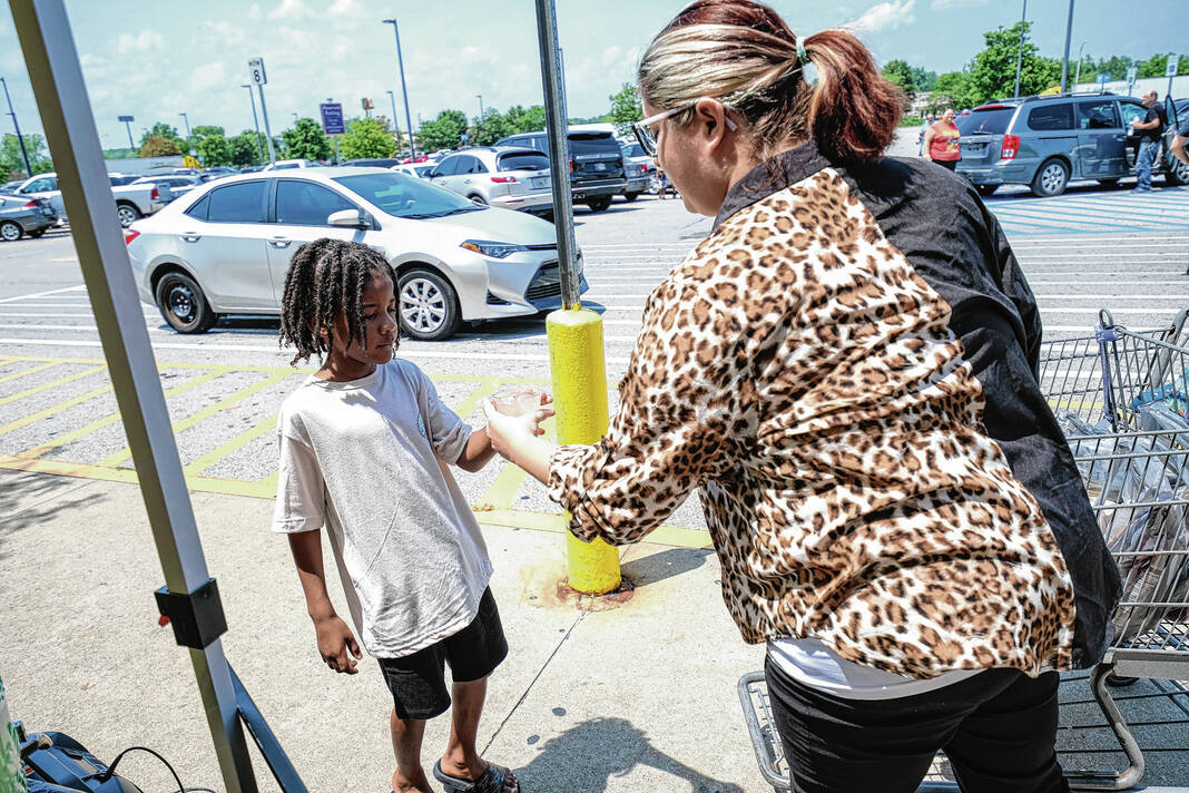 Mike Wolanin | The Republic The Lemonade Bros. Jacob, left, and Jonathan Jones pose for a photo at their stand outside the Walmart on Merchant Mile in Columbus, Ind., Wednesday, July 5, 2023. The Lemonade Bros. partnered with Walmart to help raise money for their fundraiser for Riley Hospital for Children.
