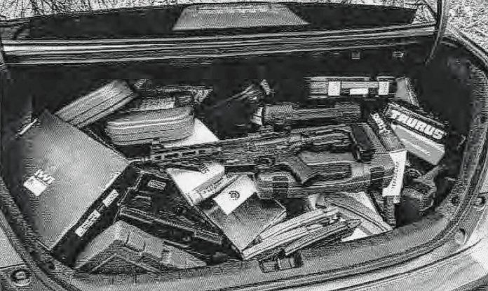 The indictment contains an image of the trunk nearly completely full with guns, including an assault rifle, and a list of 141 weapons that authorities said they seized from Mull.