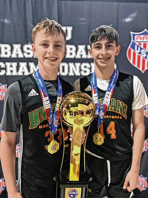 Austin Perry, who will be a freshman at Columbus North, and Hudson Lang, who will be a freshman at Trinity Lutheran, helped the Indiana Elite Swish win the 14-and-under AAU National Championship last weekend in Orlando, Florida.