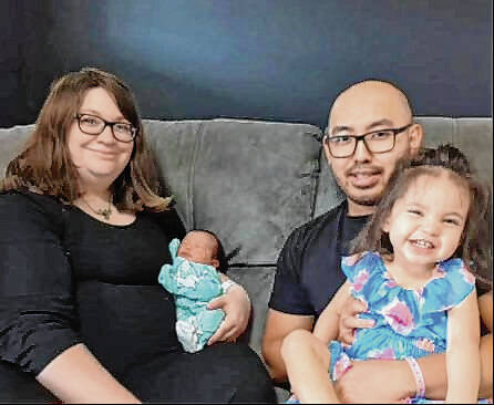 Photo provided Rachelle Grey holds newborn Raven Lily as Dante Grey holds big sister Luna, as the family recovers from the newborn’s surprise arrival on the way to Columbus Regional Hospital.