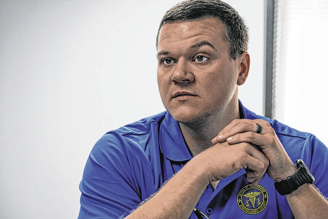 Mike Wolanin | The Republic ​ Bartholomew County Coroner Clayton Nolting is shown during an interview at his office in Columbus, Ind., Wednesday, May 1, 2019.